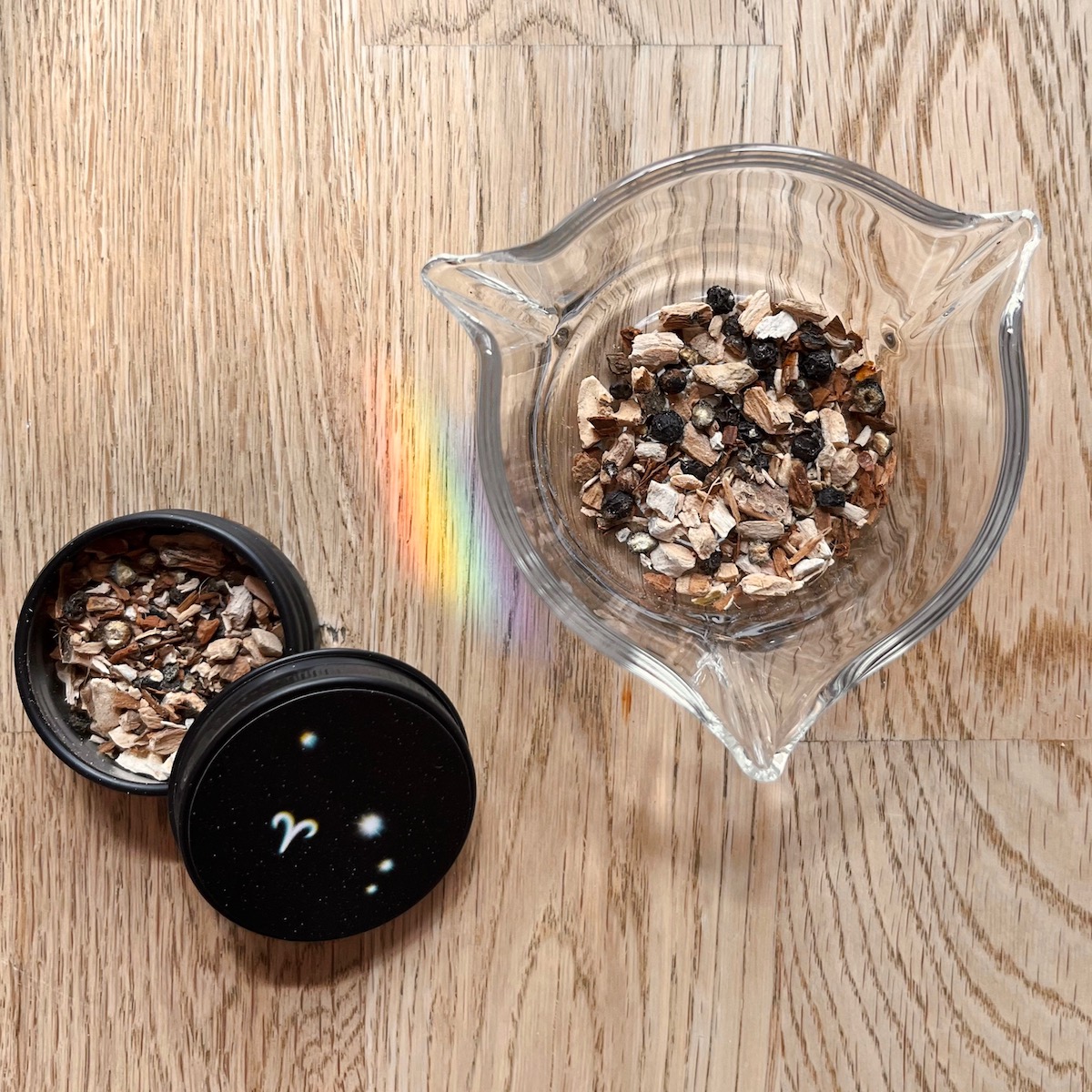 Damit könnt ihr euren Space locker mehrere Stunden mit Widder Vibes anreichern. Alternativ könnt ihr auch das ganze Döschen reingeben, ein 8 Stunden Teelicht in die Lampe stellen und die Räuchermischung immer mal wieder (so alle 1-2 Stunden) mit dem Finger umrühren. Die Zusammensetzungen der zwölf Räuchermischungen könnt ihr der Produktbeschreibung im Shop entnehmen.