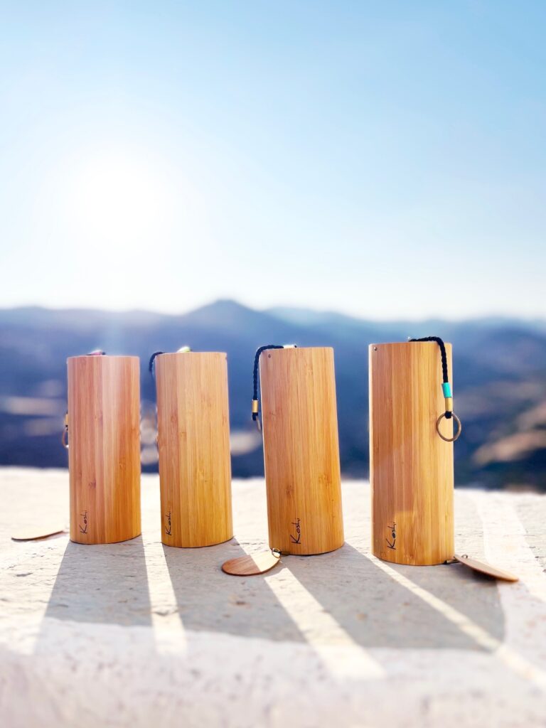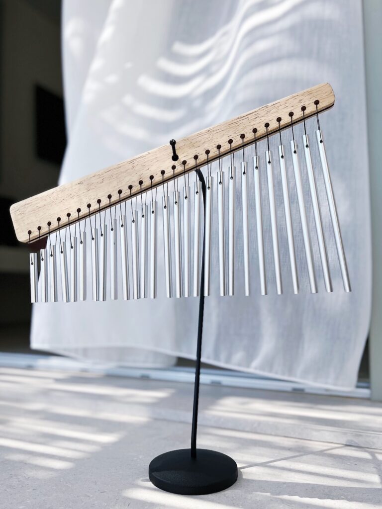 Speaking of wooden instruments, I have to mention our Rain Column here. It’s mainly used in Private Sound Baths. Ours is a wooden model from the German brand Allton. It’s an older version that plays for about seven minutes: